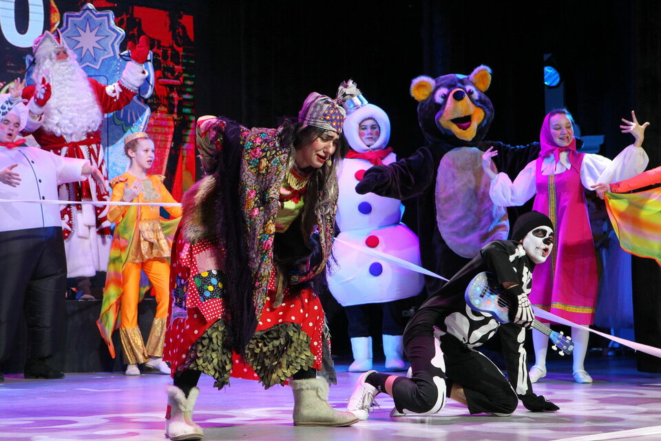 Узнаваемые герои, любимые мелодии, зажигательные танцы и много чего другого, яркого, интересного, запоминающегося перемешалось в сказочном новогоднем представлении, решенном в жанре мюзикла. В волшебном мире встречаются Дед Мороз и Кощей Бессмертный, Камыр-батыр и Баба Яга, хитрый Ворон и Шурале, Маша и Медведь, Маленький Мук и страшное Дикообразное, внучка Кощея и Снегурочка, а также роботы-монстры, милые зверята и даже бабочки. Вместе со сказочными персонажами и героями мультфильмов зрители погружаются в водоворот событий, полных нешуточной борьбы Добра и Зла, в которой каждый, сидящий в зале, может влиять на происходящее — подпевая, подсказывая, голосуя за героев представления. Как и полагается в сказке, всё заканчивается хорошо. Коварные планы злодеев рушатся, добрые и весёлые персонажи побеждают и прощают своих врагов, а у внучки Кощея сбывается мечта — она обретает настоящих друзей. В конечном итоге, герои спектакля и зрители вместе встретят самый добрый, самый волшебный, самый красивый праздник — Новый год. Продолжительность: 1 час. Детям от 4 лет нужен отдельный билет, дети младше 4 могут сидеть на коленках у родителей. Рекомендуемый возраст: 0+.
