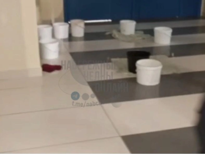 Авария произошла на верхнем, техническом этаже: прорвало трубу системы вентиляции, и горячая вода потекла вниз — прямо на третий этаж, где в это время шли уроки. На кадрах видно, как школьники с интересом наблюдают за потоком, а некоторые даже помогают убирать воду ведрами.